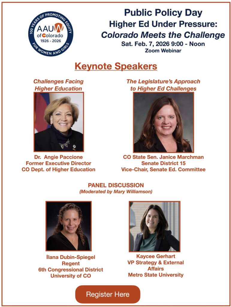 Click here for final summary of 2025 AAUW of Colorado Legislative updates and here for further recap.